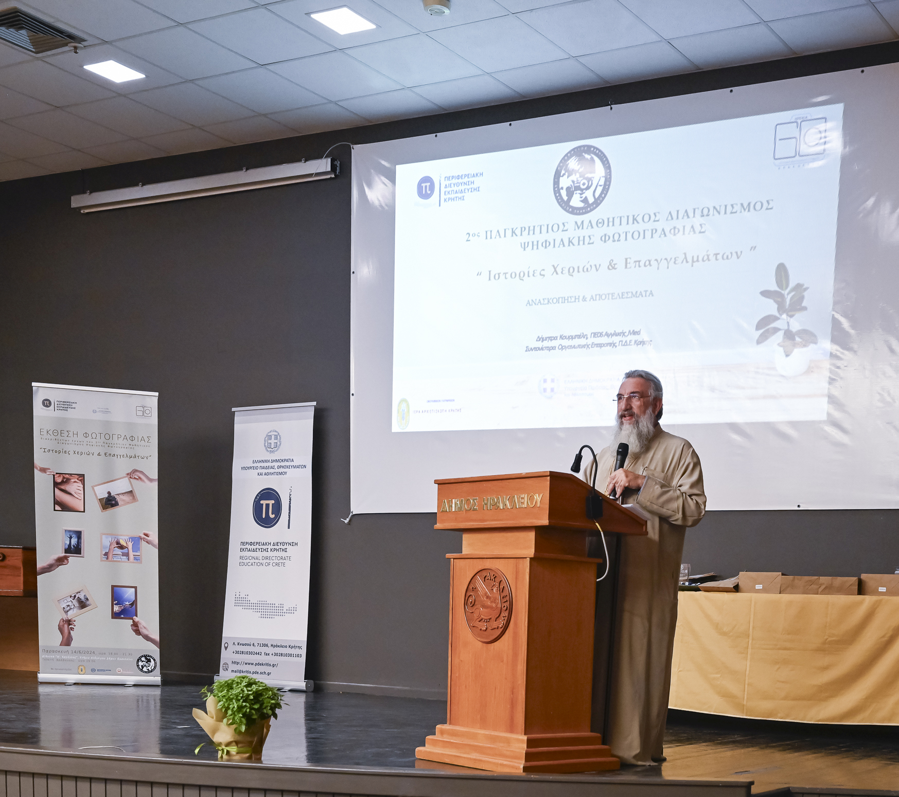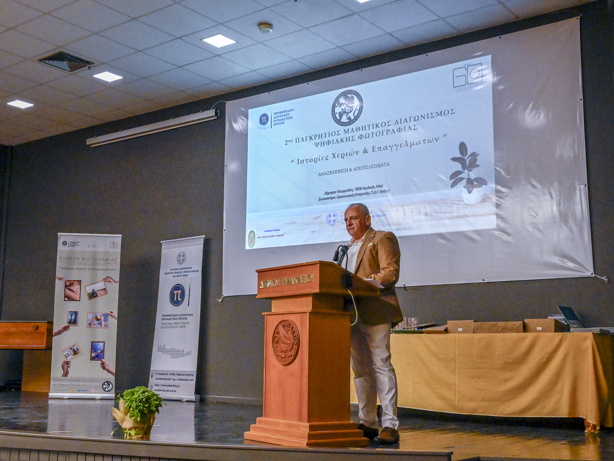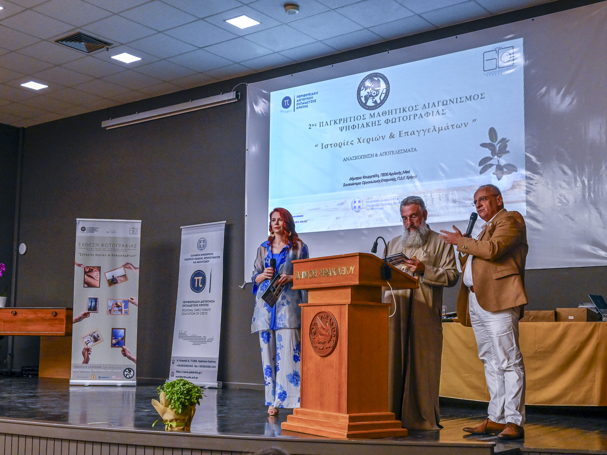 Την Παρασκευή 14 Ιουνίου 2024 πραγματοποιήθηκε η έκθεση και η τελετή απονομής στο πλαίσιο του 2ου Παγκρήτιου Μαθητικού Διαγωνισμού Ψηφιακής Φωτογραφίας με θέμα “Ιστορίες Χεριών & Επαγγελμάτων” στην κατάμεστη αίθουσα «Μ. Καρέλλης» στο Κτήριο Ανδρόγεω του Δήμου Ηρακλείου, προσελκύοντας πάνω από 250 προσκεκλημένους, μαθητές και μαθήτριες, γονείς, διευθυντές σχολείων και εκπαιδευτικούς από όλη την περιφέρεια της Κρήτης.